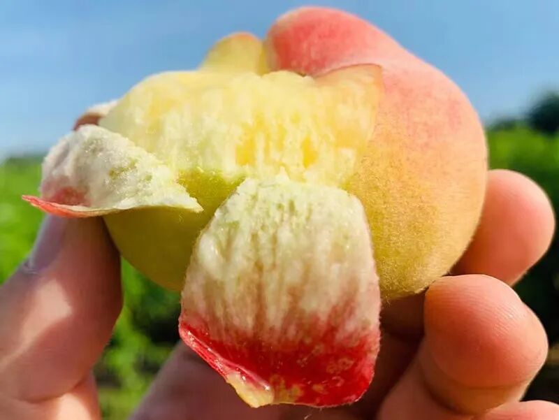 既有水蜜桃的水嫩,黄桃的香浓,又有油桃的鲜亮,蟠桃的外形!