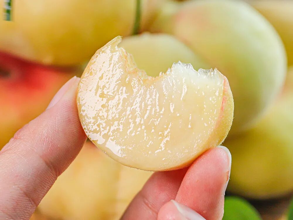 满满的桃香浓郁上头,果肉晶莹剔透,汁水多到冒出来,不愧是大自然结的果子,这股新鲜劲不是打药、催熟的果子可比的。