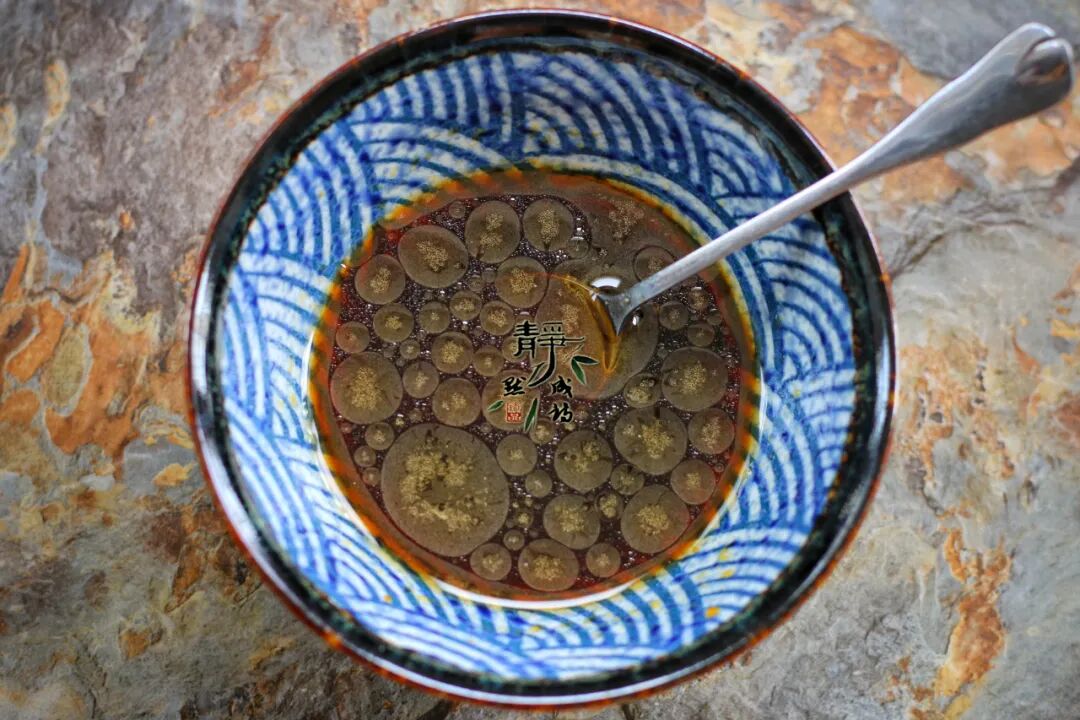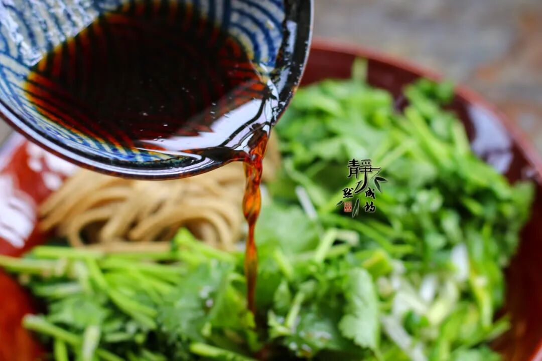 3、用生抽、陈醋、香油调一个碗汁儿,这里不必放其他调味料。
