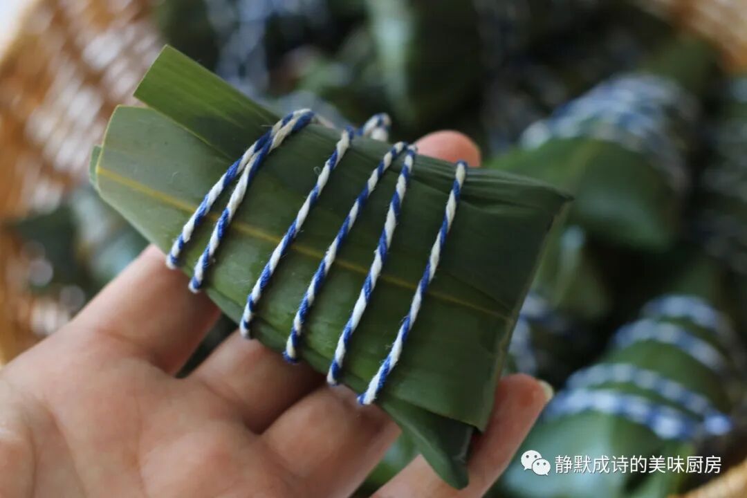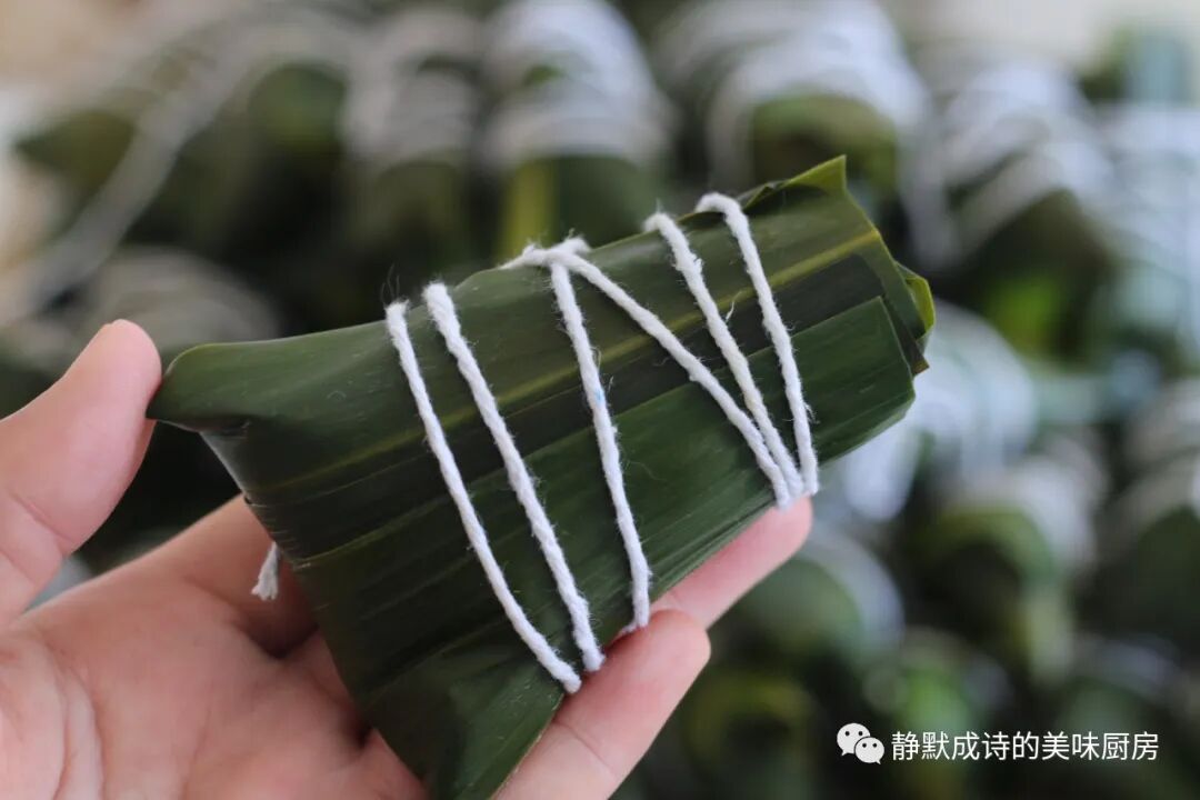9、新手可以多用些棉线,把粽子五花大绑,防止煮时漏米。