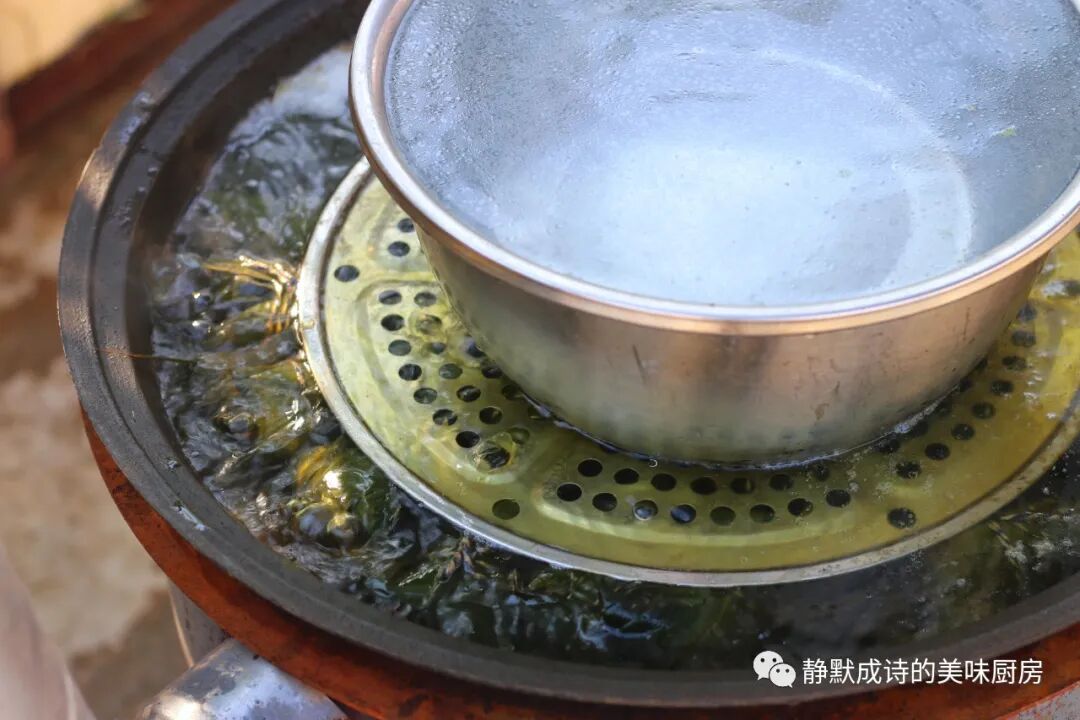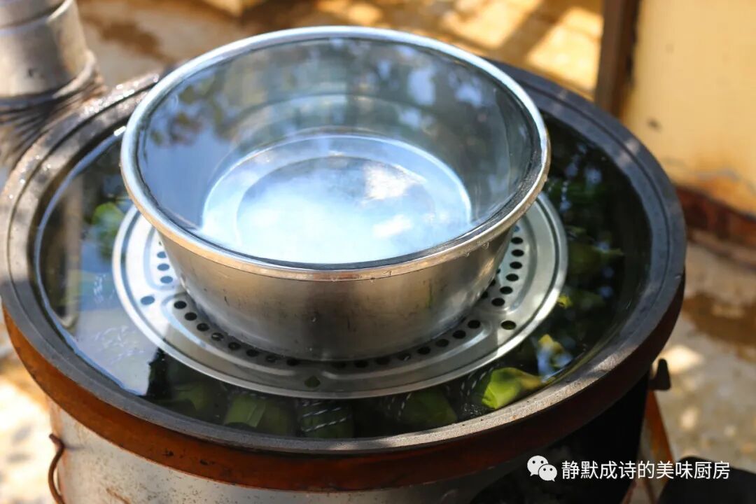 10、煮粽子时,锅底先放一个蒸锅的篦子,然后再码好粽子,添加清水,最上面再放一个大点儿的篦子,篦子上放一个平底锅,锅中也加满清水。就可以开火煮粽子了。后面要注意在煮的过程中,如果锅中水少了,就把最上面的盆中的热水加到锅里,然后盆中继续加入清水至满。