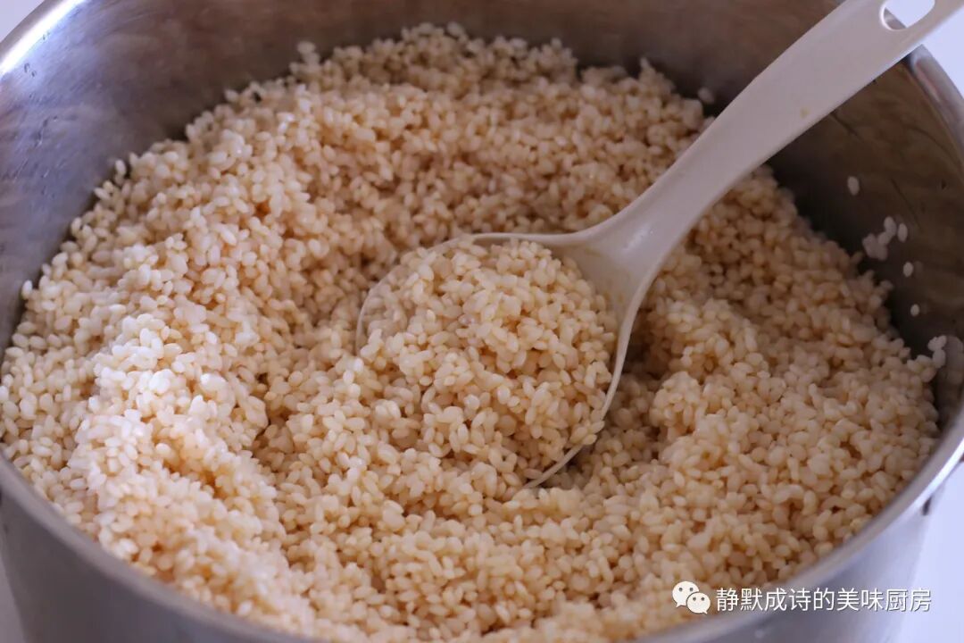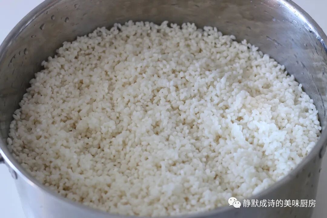 2、糯米有长粒和圆粒之分,包粽子用圆糯米。把糯米提前用清水浸泡4-8个小时(水要高出糯米至少两个指节),天热的话,期间要多换几次清水。泡好之后,把米沥水待用。