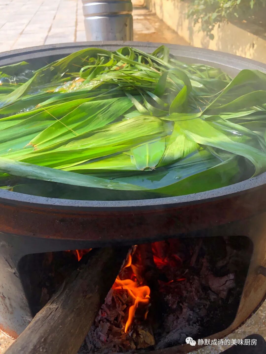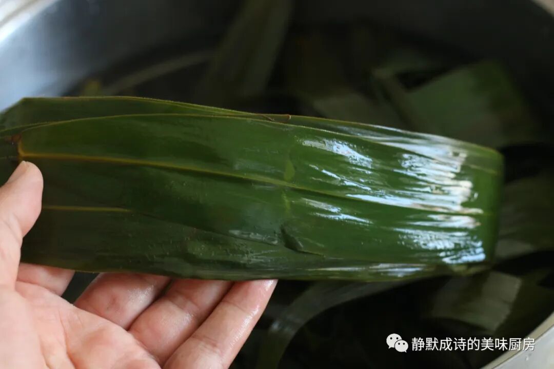 3、我用的是芦苇的叶子,这个叶子比较窄而且质地发脆,所以在包粽子之前需要把它煮一下以增加叶子的韧性,防止包粽子过程中裂开漏米。