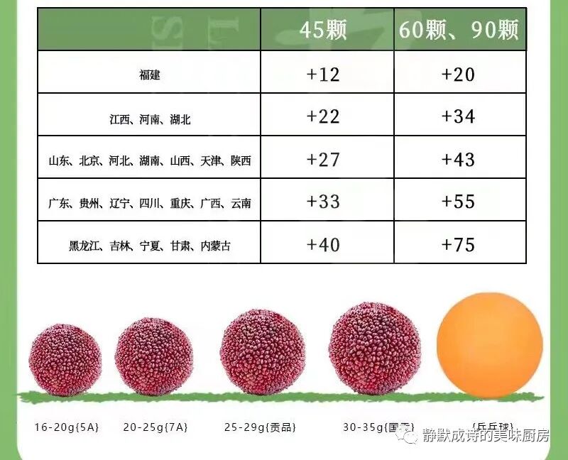 为保证大家吃到最新鲜的杨梅,我们发的是顺丰生鲜空运特快,非偏远地区基本都是次日达,所以,运费较贵,而且各地的运费都不相同。下单45颗的朋友,下单后先不要付款,待客服修改运费之后再付。或者付款了也没关系,发货之后我们会主动给大家退运费差价。