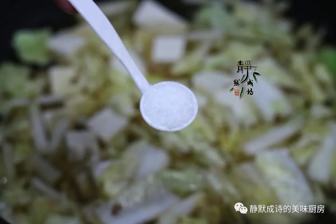 7、调入盐,轻轻搅拌均匀。