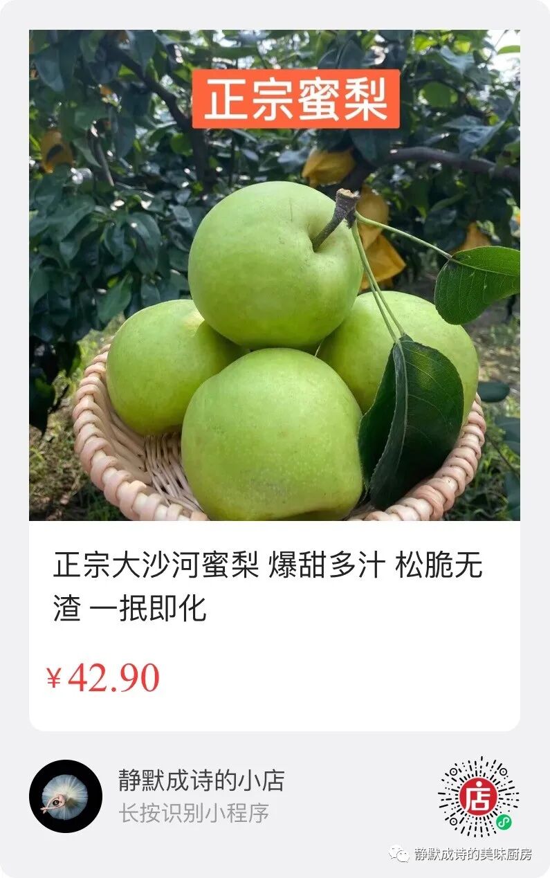 鸭肉性凉适合夏天食用,同样,梨,也是清热去火的绝佳水果。目前,正宗的大沙河蜜梨成熟了,它是梨的早熟品种,松脆多汁,入口化渣,甜度是普通梨子的1.5倍,一口下去,就跟吃冰糖雪梨似的,是夏季不可多得的降火神器。产地现摘现发,大家勿错过它。
