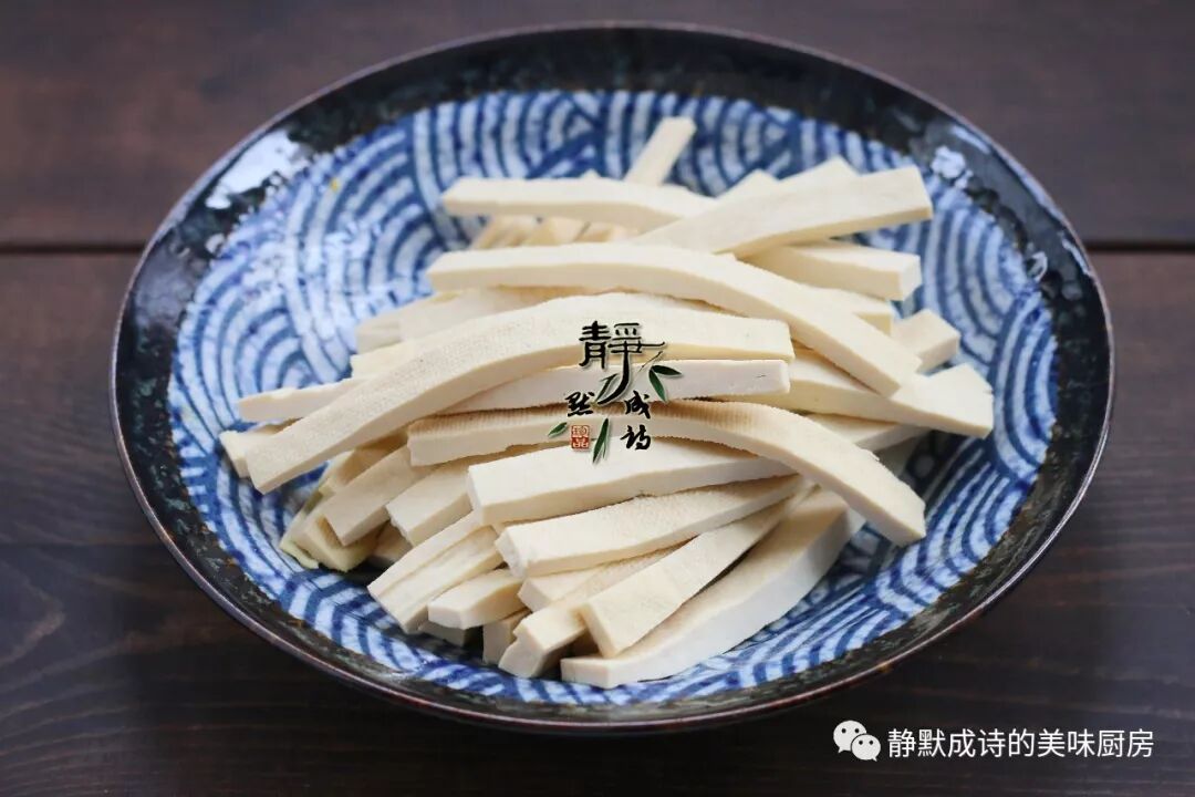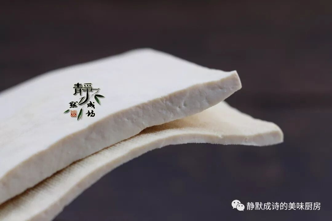干豆腐,比豆腐口感结实、筋道,它水分少,炒着吃炖着吃或是做成卤味儿都不错,我喜欢它多于豆腐。