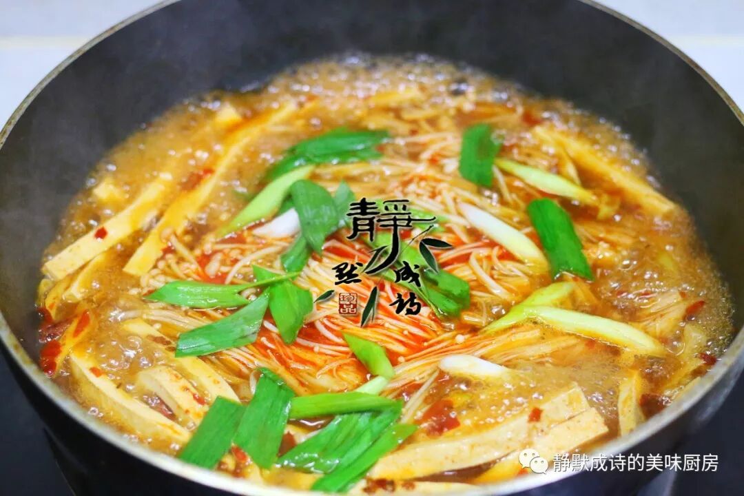 到了冬天,大家要多吃些温性的食物,寒性食物要尽量少吃。这道菜中,大家可以把金针菇换成其他自己喜欢的配菜,例如一些绿叶蔬菜,吃起来也不错。