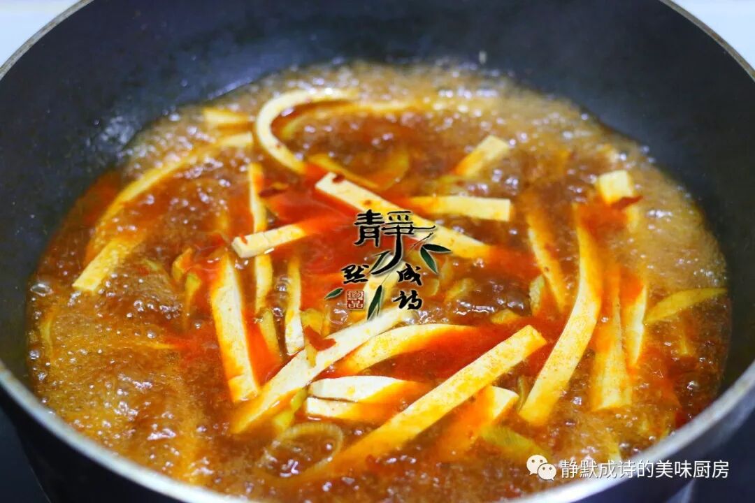 7、加入干豆腐,小火煮上几分钟,让干豆腐入味儿。