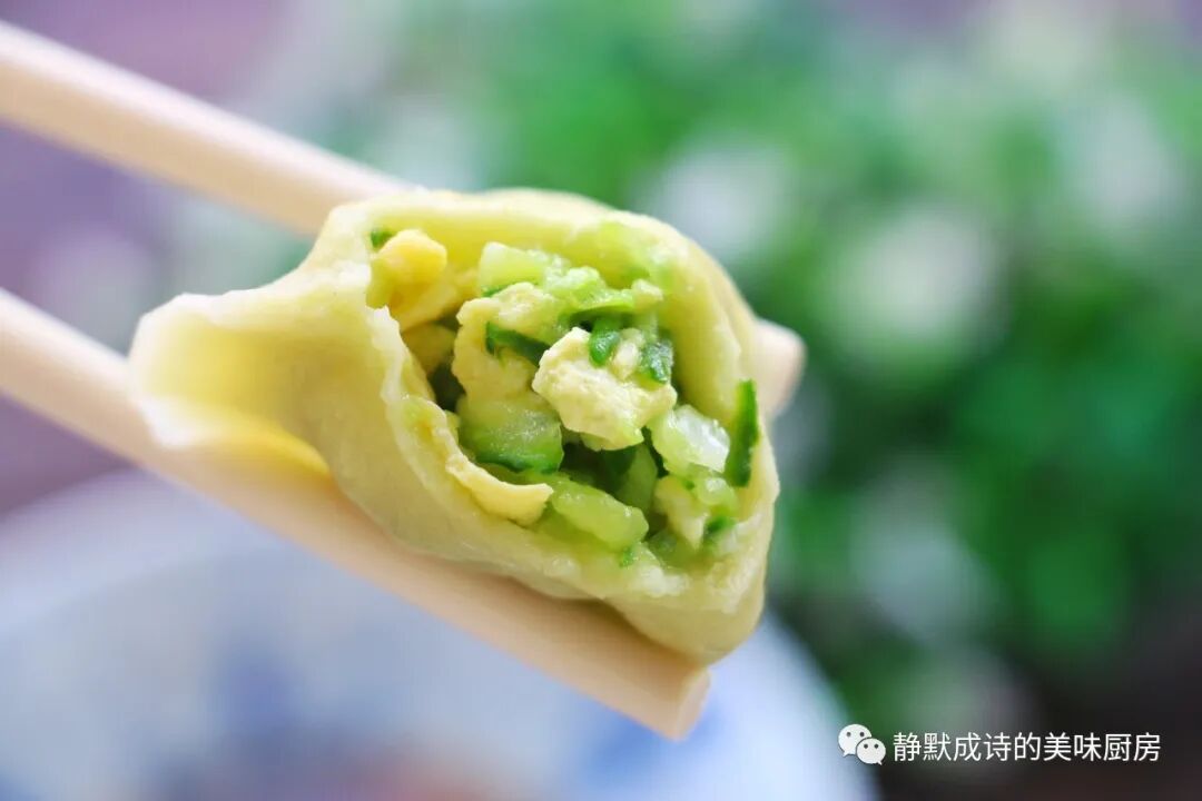 8、色香味俱全的黄瓜鸡蛋馅儿饺子,成本不过5块钱,却好吃到爆,每人一盘不过瘾。