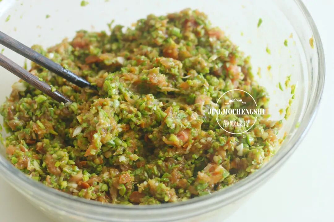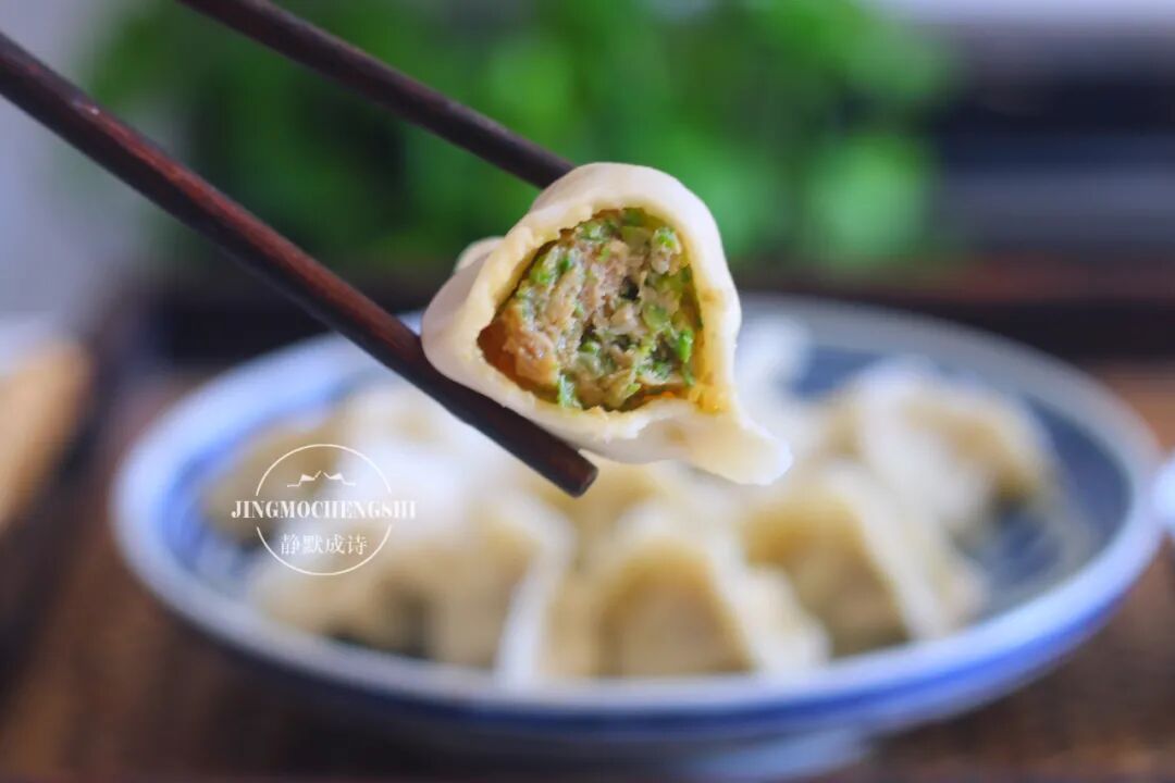 8、这样调馅儿包出来的猪肉豇豆饺子,鲜香和酱香并存,猪肉滑而嫩,豇豆角鲜而脆,吃着别有一番口感。有时间可以试试看。