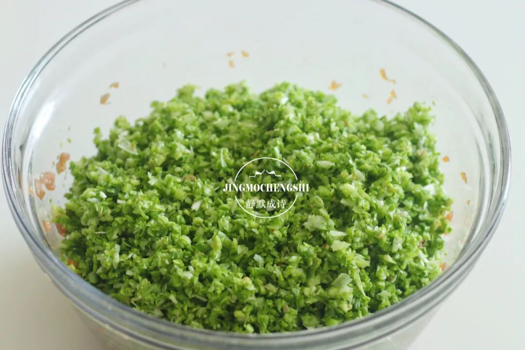 楼顶上种着几棵豇豆,没有给它搭豆角架,它们就在地上开花结果,一根根嫩绿的豇豆垂到了地上,随手摘上一把,当作打卤面的菜码或是入馅儿都好吃。很多人都不太知道豆角馅儿的饺子怎么调馅儿,其实也很简单。喜欢吃软口的豆角馅儿,就提前把豇豆焯软,然后剁碎入馅儿。喜欢吃脆嫩口的,豇豆就不必焯水,最好是剁碎了入馅儿。焯水与否,决定了豇豆馅儿的口感,或软乎或脆爽,看个人喜好。