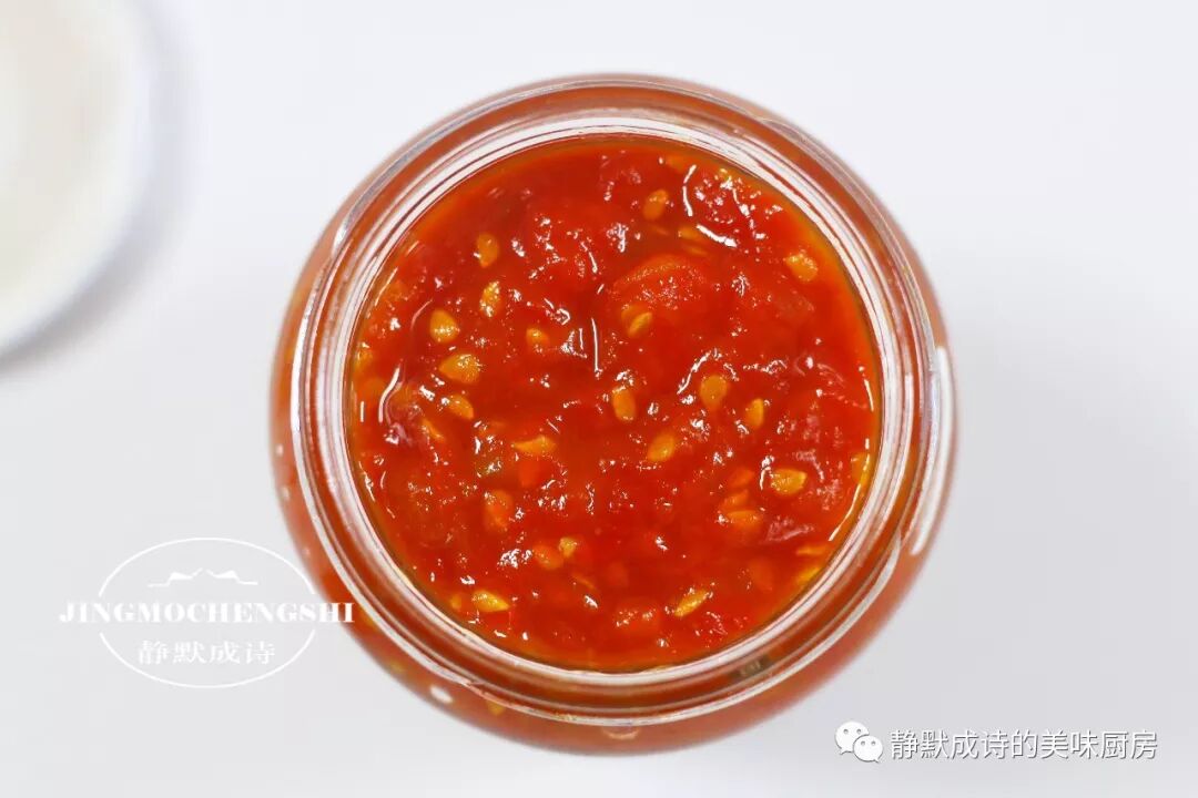 10、准备好无油无生水的瓶子(瓶子提前在开水里煮一下消消毒),把番茄酱装进瓶子里,密封好,放冰箱冷藏保存,一年都不会坏。