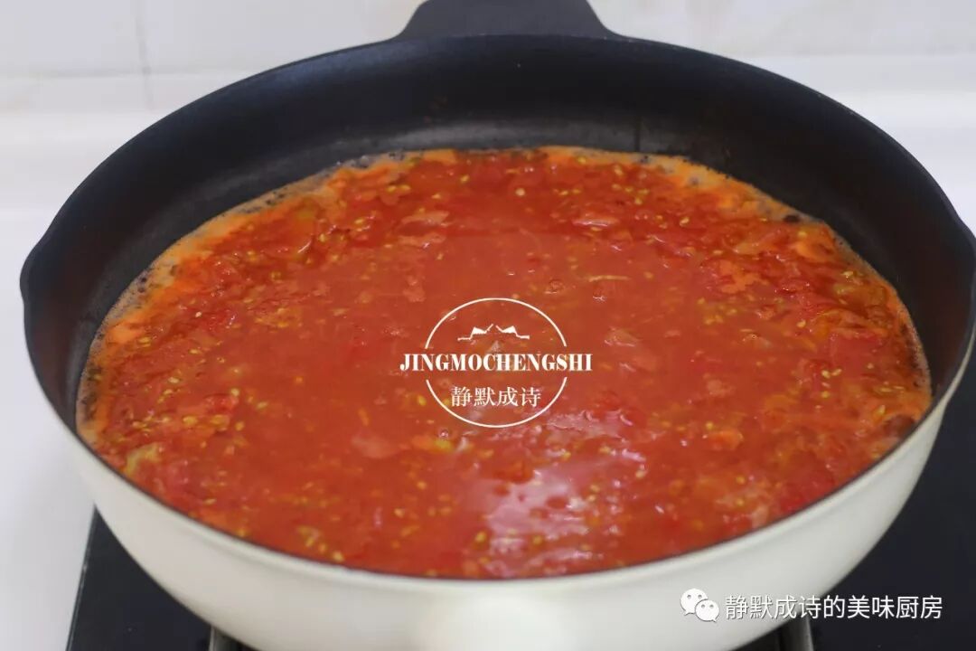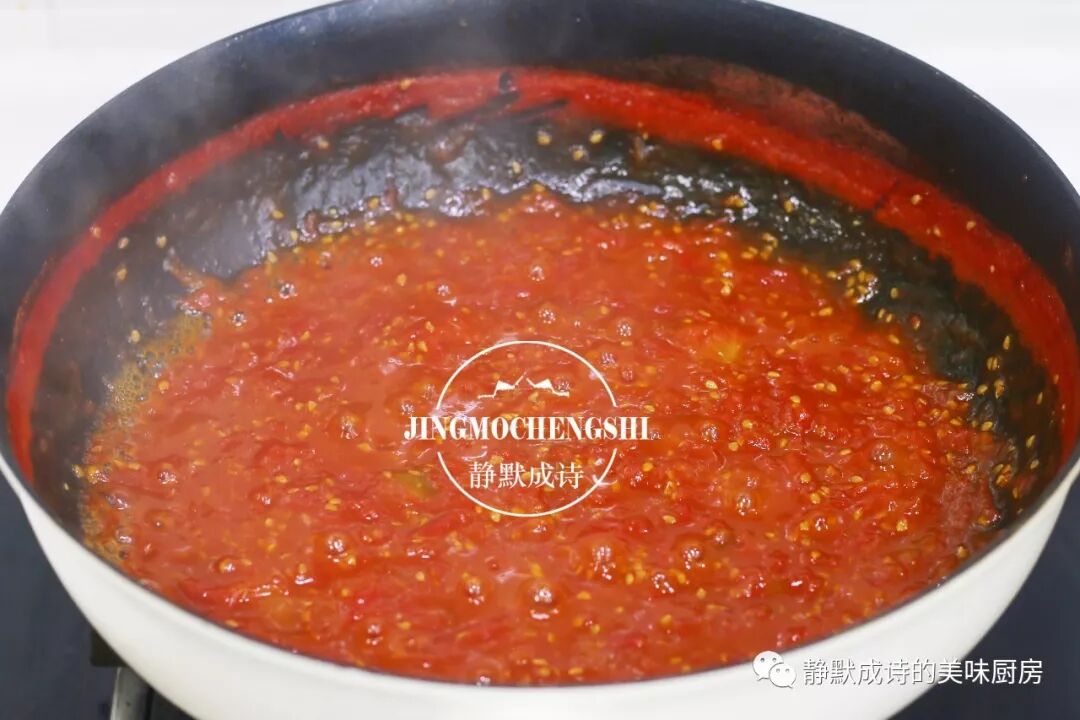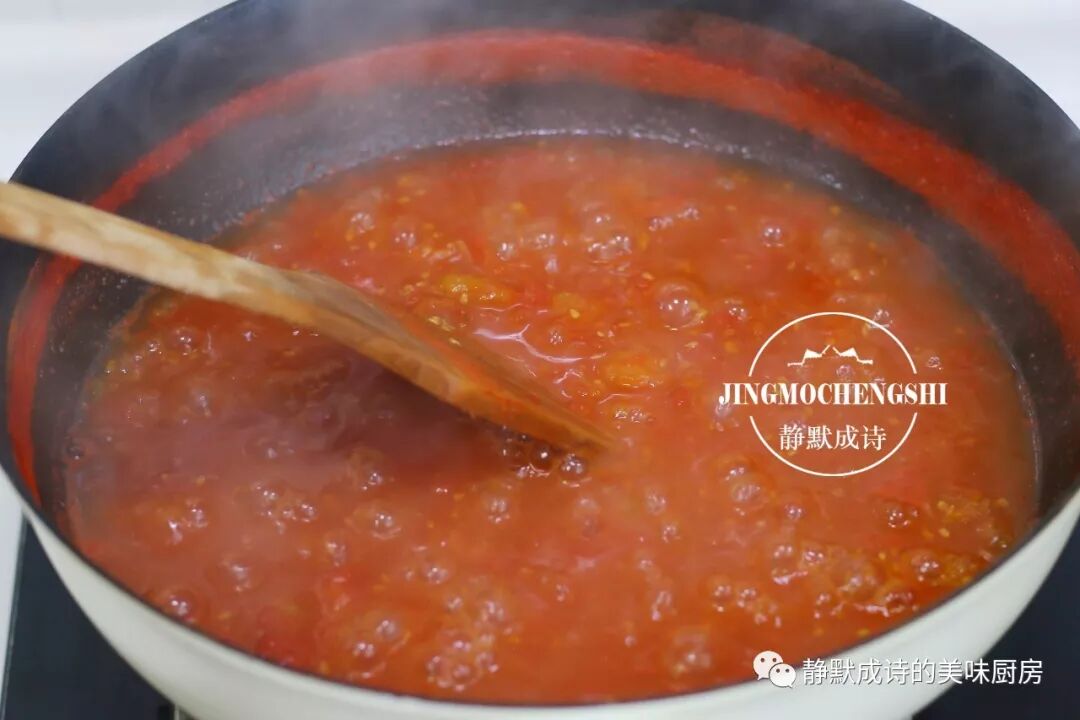 9、把番茄酱熬至自己喜欢的浓稠度就可以关火了。
