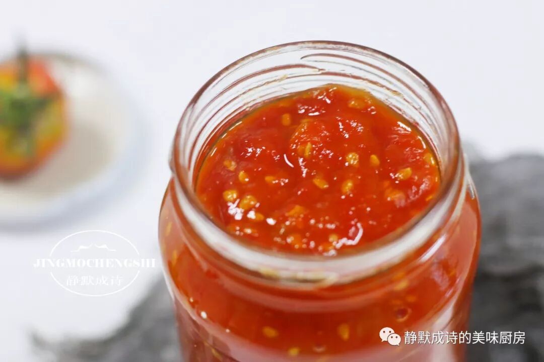 后来,就改变了做法,不再上锅蒸,直接炒制,做法更简单化了。今年,我家楼顶上种了十几棵西红柿,硕果累累,两三家人都吃不完,除了放冰箱冷冻了一部分,我还给孩子做了番茄酱,四斤多番茄做了两小瓶,孩子能吃上半个多月。自己做的番茄酱,味道好增强食欲,没半点添加,一口吃下去,酸酸甜甜,完全没有添加剂的味道,比买的好吃不是一星半点儿。大家真的得试试这个做法,孩子们都爱番茄酱,抹面包也好,蘸薯条也罢,再或者做个茄汁里脊,茄汁鱼块儿什么的,都用得上。