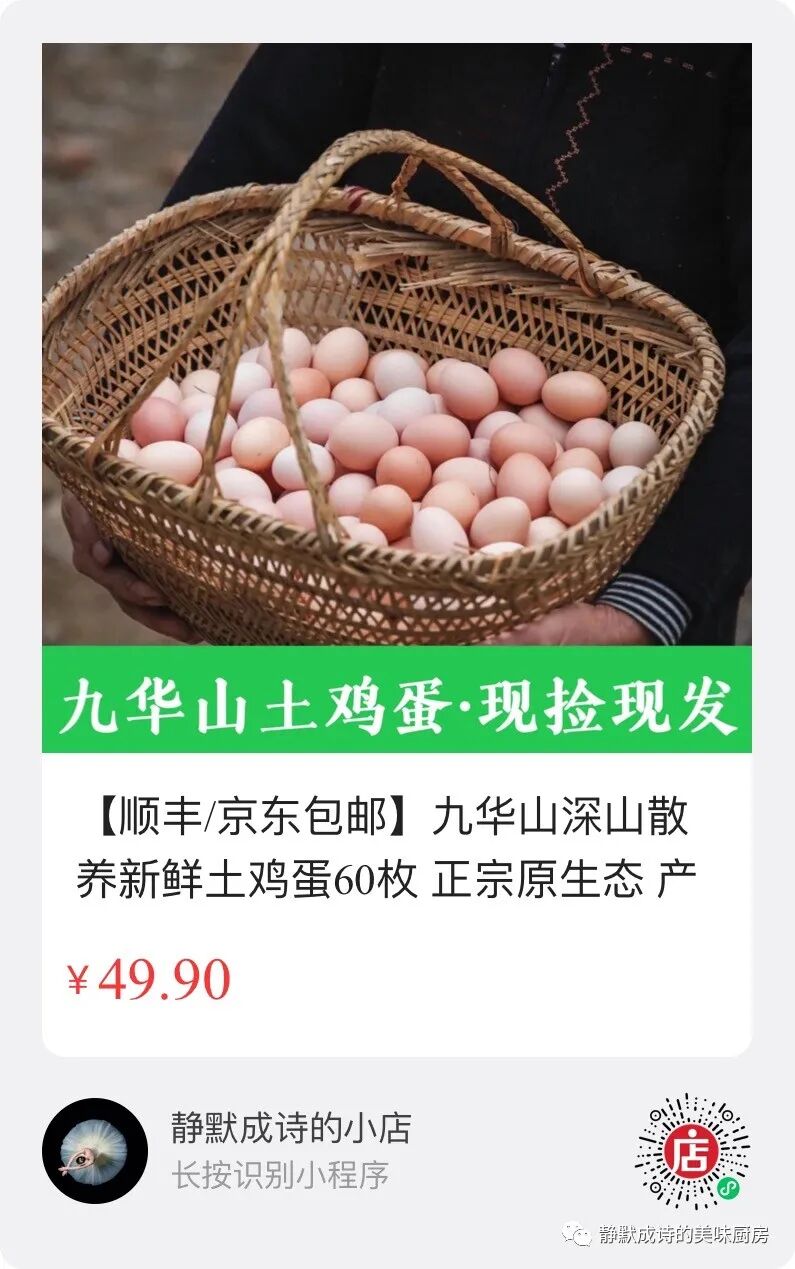 鸡蛋天天都在吃,推荐给大家来自九华山的散养土鸡蛋,个头虽然很小,但清水一煮就很香。目前60枚仅49.9元就包邮到家,非常实惠,识别下图小程序即可购买。