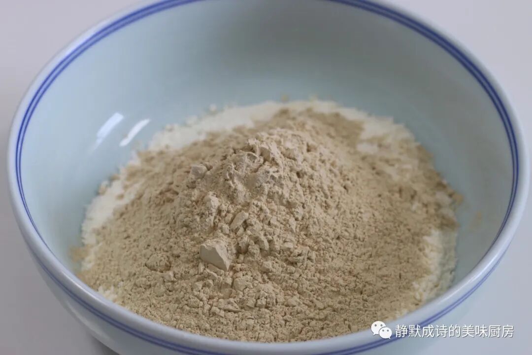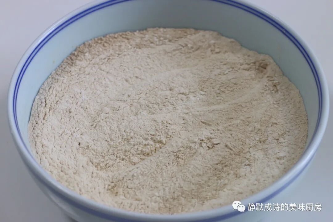 1、先来把面和好:400克普通面粉中加入100克的红薯面粉。