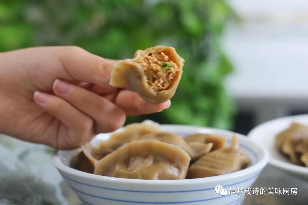 9、饺子皮颜色不好看,但它中吃啊!孩子两口一个,一会儿干掉一碗。这个饺子皮儿,比吃纯小麦面粉的强,您想不想试试看?