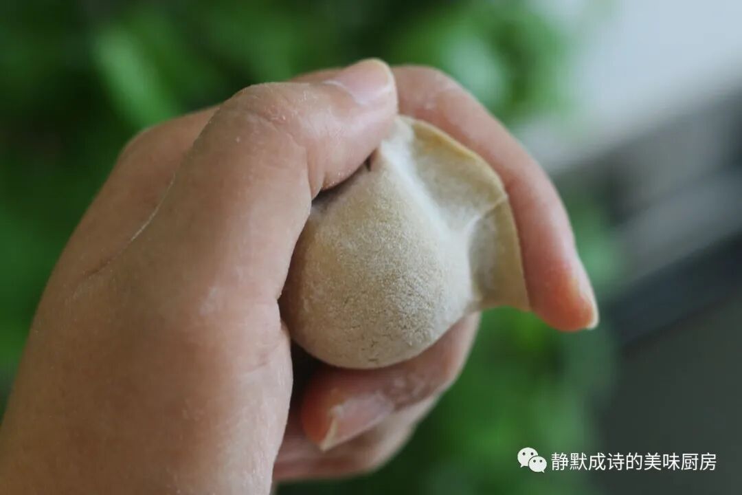 7、把饺子包好,我喜欢用挤的方式包大肚饺子。