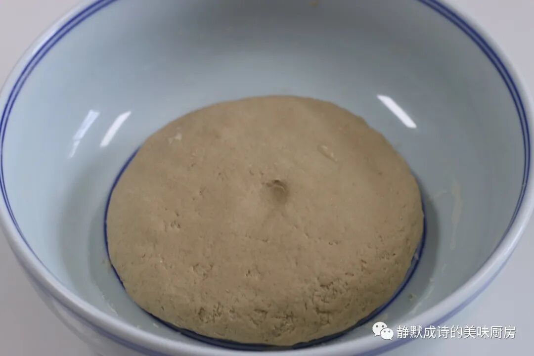 4、然后下手揉成光滑的面团。盖上锅盖或湿布,让它松弛。松弛的时间越久,面团就越好用。