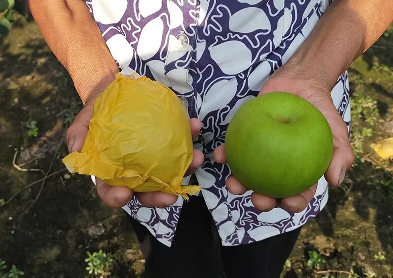 世代梨农传承守护,坚持农牧结合绿色循环模式,果农还会为每颗梨都套上纸袋,不仅为了隔绝病虫害,还让蜜梨保持如绿宝石一般的翡翠新鲜。