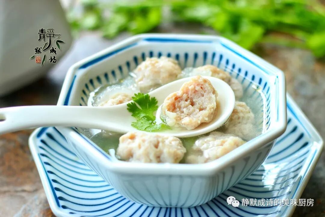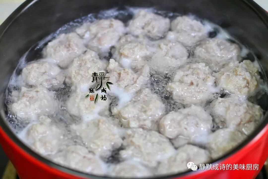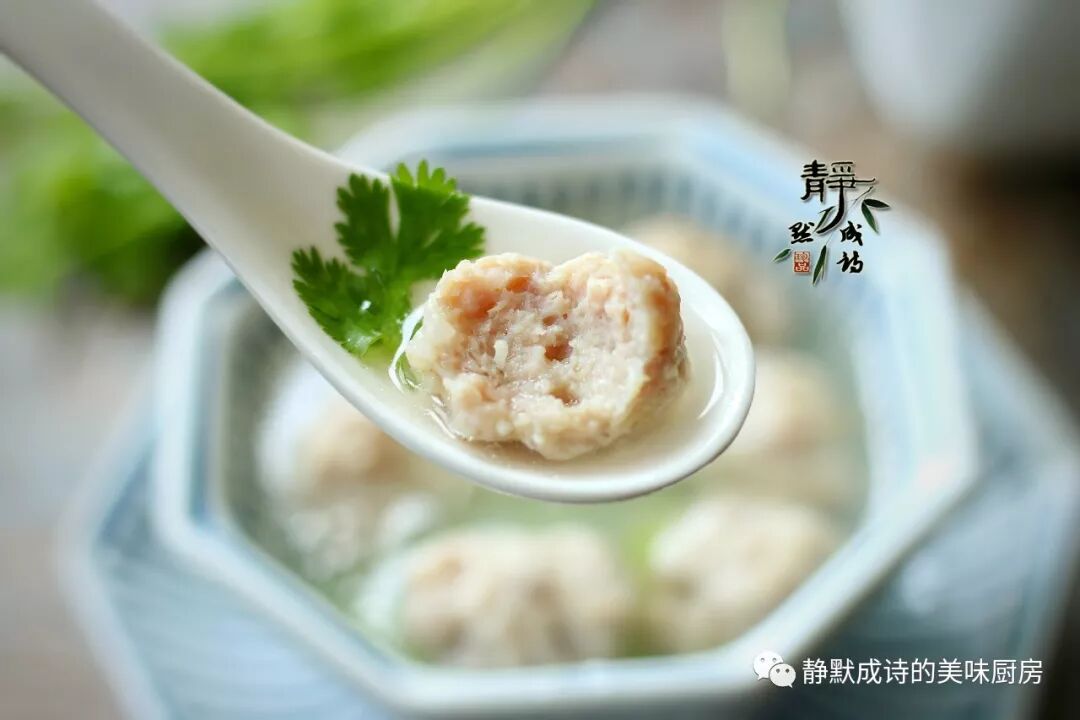 9、加了蛋清的肉丸极为滑嫩,而且有弹性,连宝宝和80岁老太吃都没问题。这样的汤清爽清香,营养丰富,越喝越喜欢。