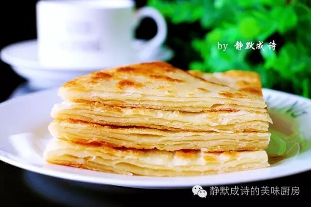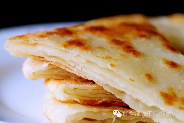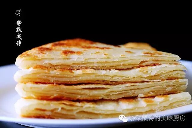 从烙饼面的和面、饧、饧后的整形、裹油、卷制、按扁的手法、擀的力度和方法、烙饼的火力及取出后的摔打,各种细节和注意事项在菜谱中都已详细说明,请仔细阅读并加以实践,相信您也会烙出表层酥脆、内部松软、层次多而分明的好吃的饼来。有人会说:我们只喜欢米饭,不喜欢吃饼,那么,我想说:技多不压身,下厨房同样如此。我相信每个会做饼的人都有自己的一套经验和手法,这就像一题多解,我的做法不是唯一答案,而且我也有多种做法,容我以后慢慢与大家分享。