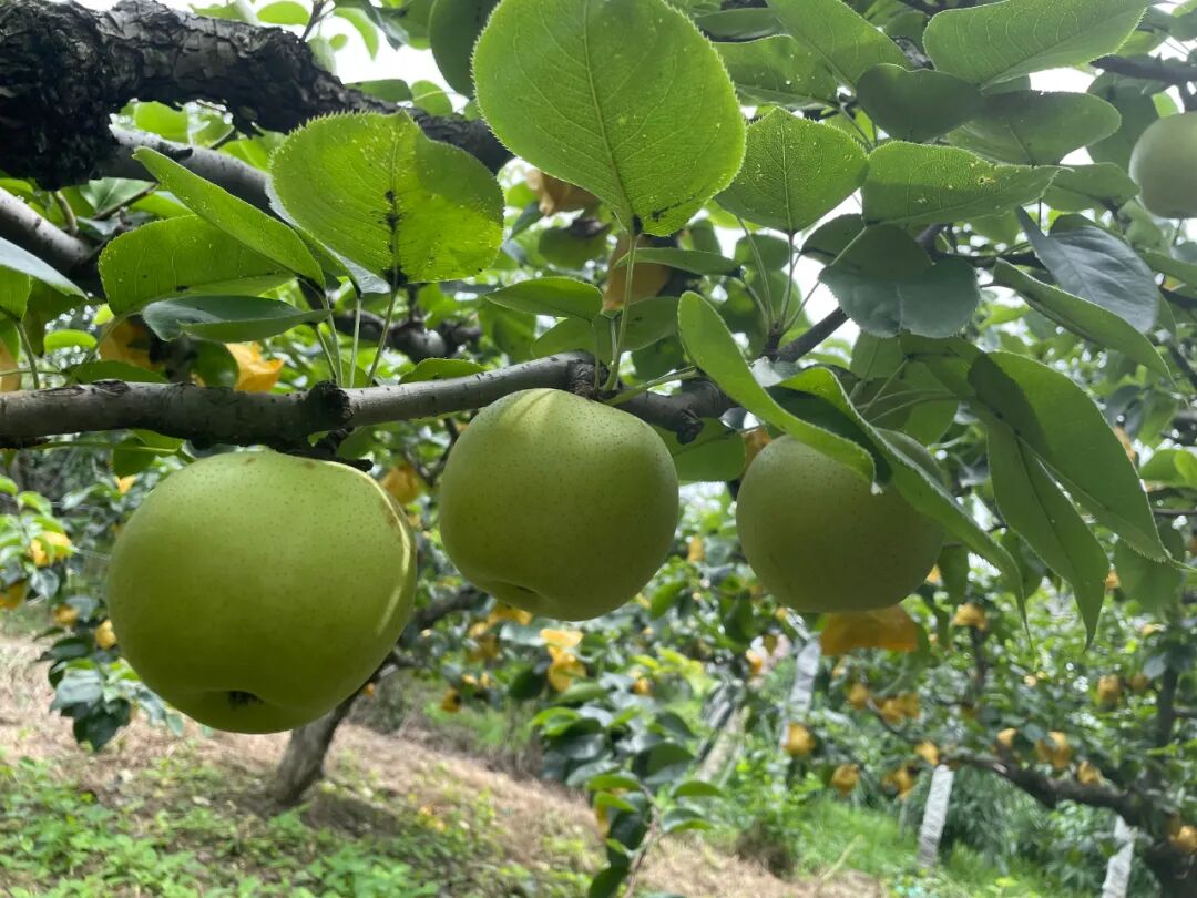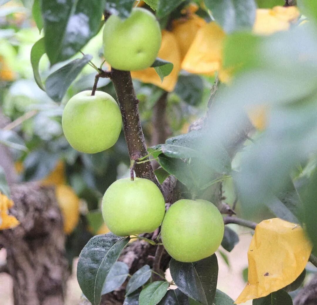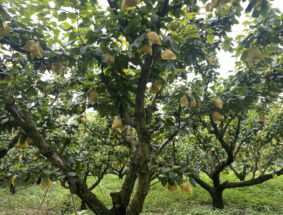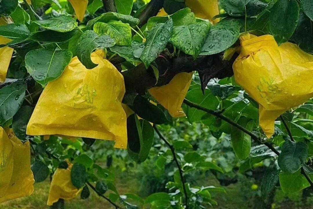 为了防虫鸟和保证梨子品相完好,梨子从刚结果就套上袋子,从不打农药。每一颗果子都纯净美观!纵观满园,一树碧绿,摘下除袋即食用,安全无农残。