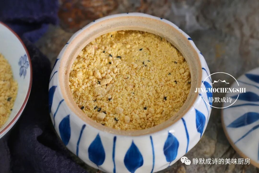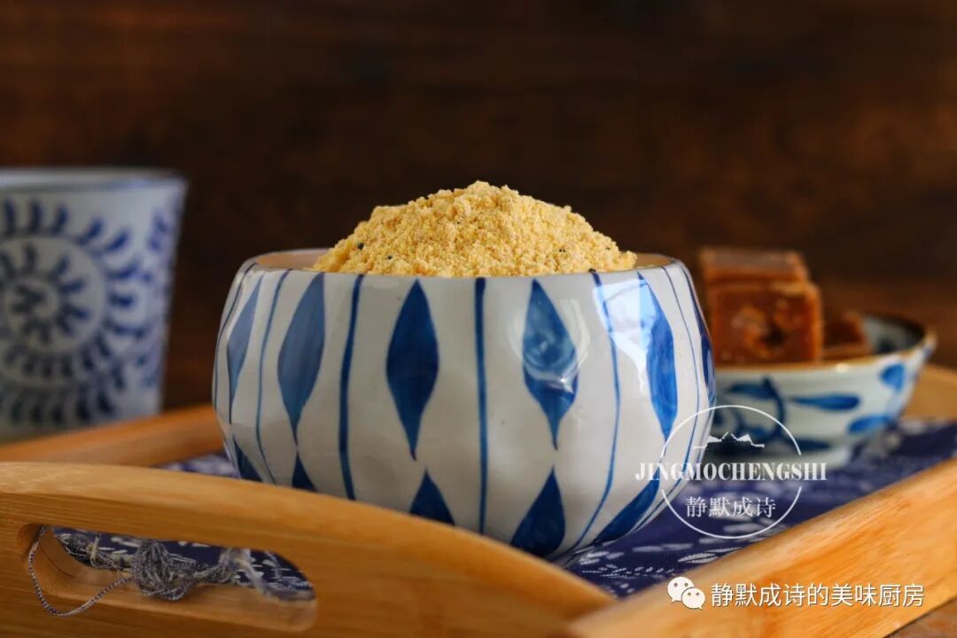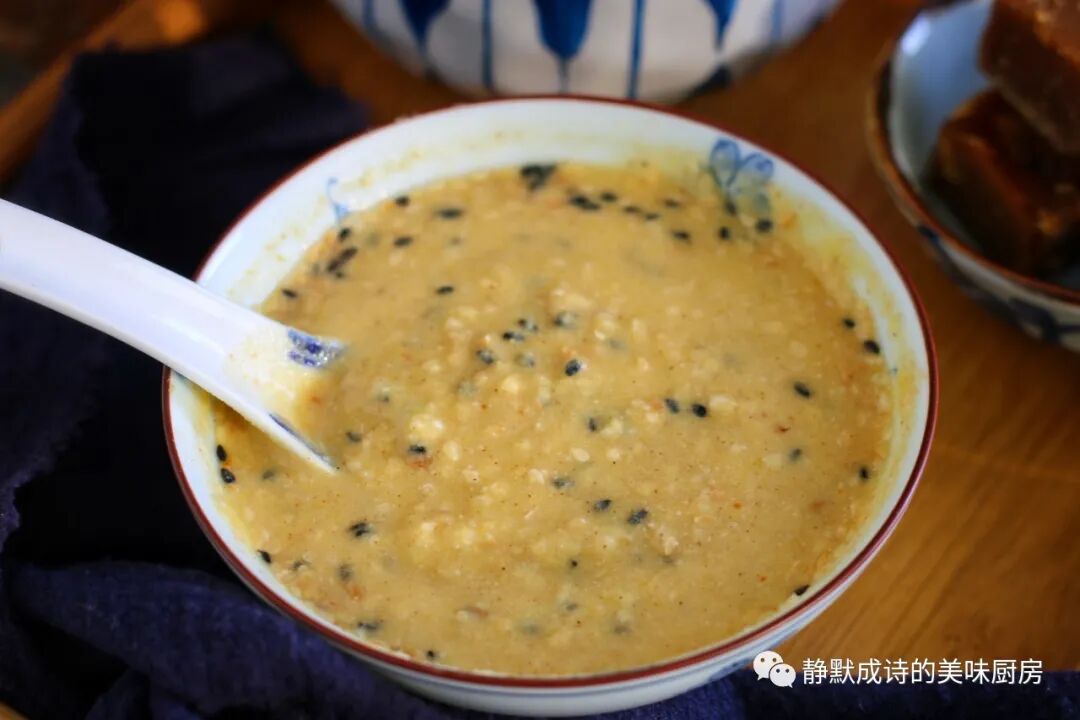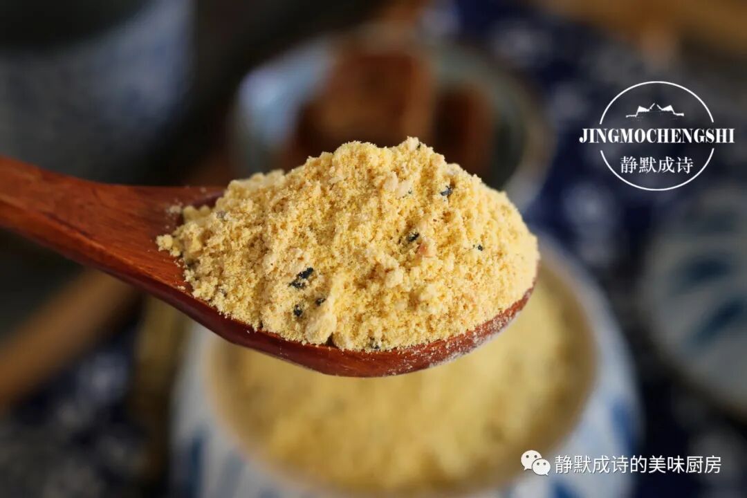 11、吃的时候再加糖:把一块儿红糖加清水煮开,然后泼至油茶面里,搅拌均匀,香甜可口的油茶面就做好了,玉米面特有的香气、浓郁的芝麻香,以及花生颗粒在口腔中被嚼碎时的香味儿,都在嘴巴里荡漾开来了,幸福感油然而生。