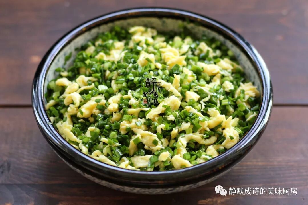 注意调馅儿时间与调馅儿时油与盐的先后顺序,韭菜馅儿就不会出水。