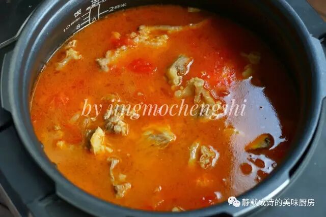 10、程序结束,有肉有汤的茄味牛肉就做好了。牛肉完整但肉质软烂,入味三分,汤头红亮,茄味浓郁,吃肉喝汤,肠胃也惬意的很。还可以在程序结束后,把肉和汤倒在一个炒锅里,再切点土豆块放进去炖熟,土豆控不要错过。