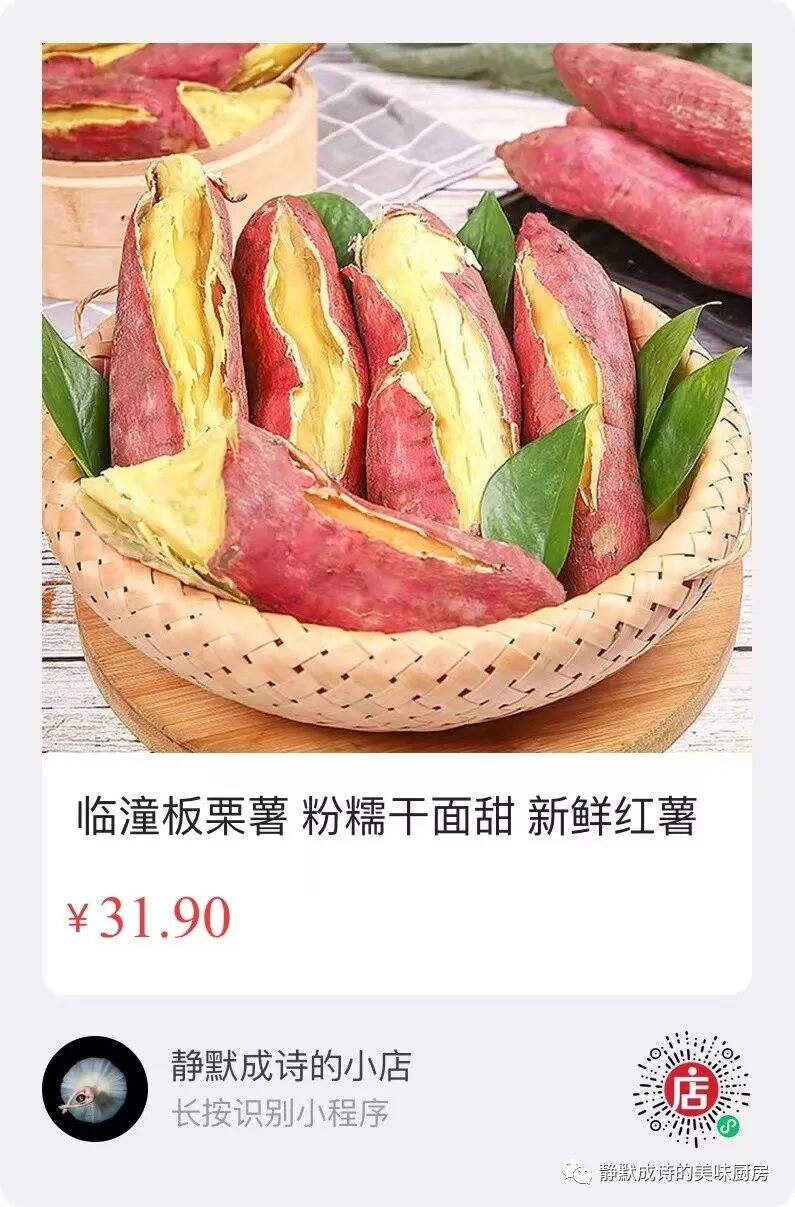 临潼板栗薯,果肉细腻无丝如栗肉。经验之谈:小个头的板栗薯口感不如大薯,薯肉会有筋,而大薯就没筋,所以,我下架了小薯试吃,只留下了大薯规格。有两位顾客一直在回购板栗薯,我猜测跟我一样,每天拿它当主食,这种饮食习惯非常值得推荐。