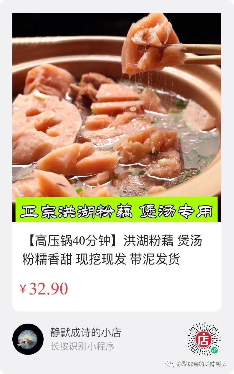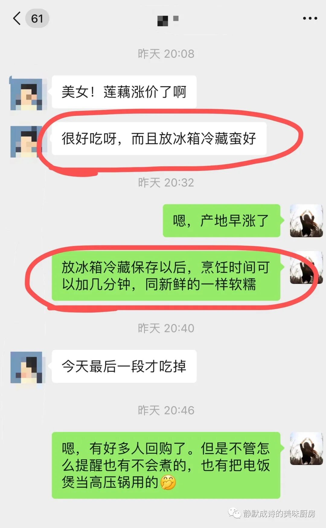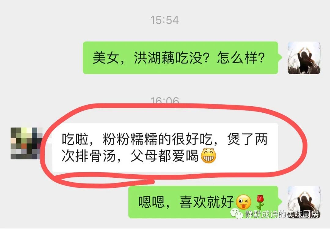 还有最后一件事,湖北洪湖粉藕,大家收到后一定要用高压锅去煮才会粉糯,我发现有的老同志把电饭煲当高压锅用,它俩可不是一回事儿!你用电饭煲煮上两个小时,粉藕也不会粉糯,只有给它以高压才会粉糯,现阶段新鲜的粉藕就得用高压锅。