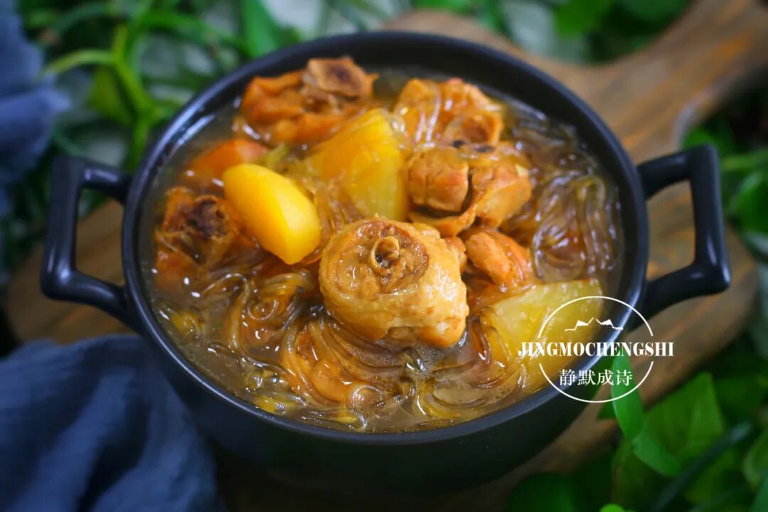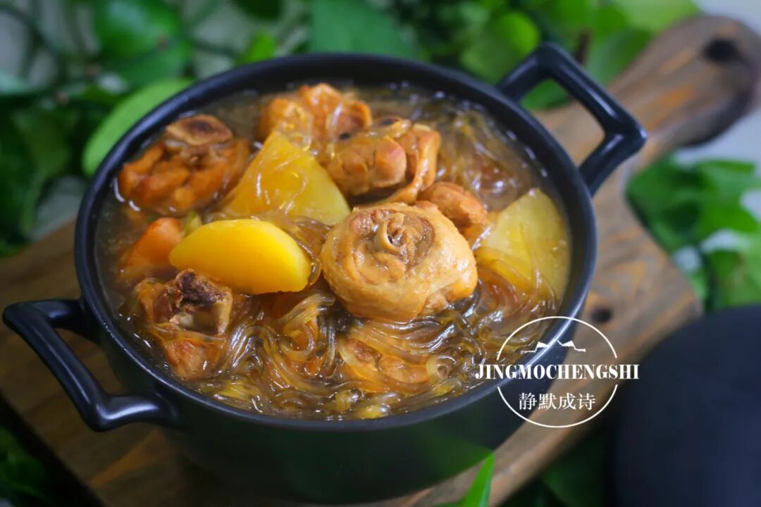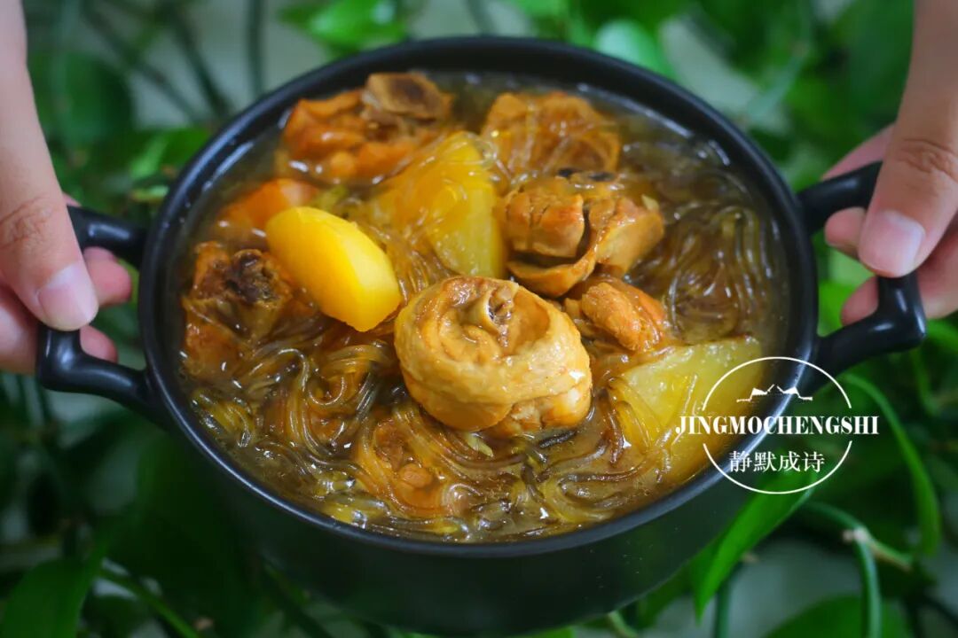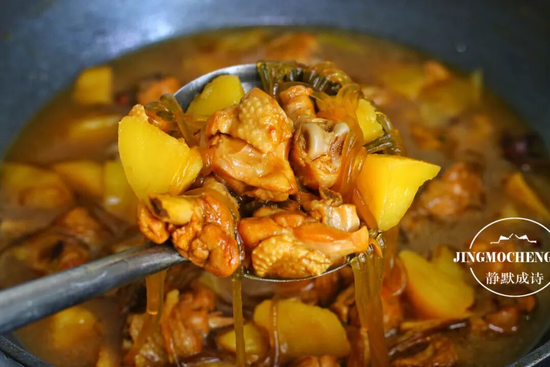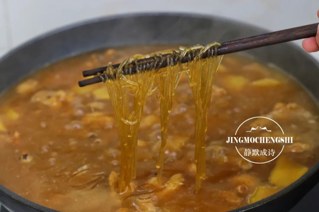 12、相对于香嫩的鸡肉而言,我更喜欢吃里面的红薯粉条,吸足了汤汁的味道,又滑又弹,“呲溜”一下就吸进嘴巴,过瘾。孩子也会主动要求添饭,比平时多吃不少。