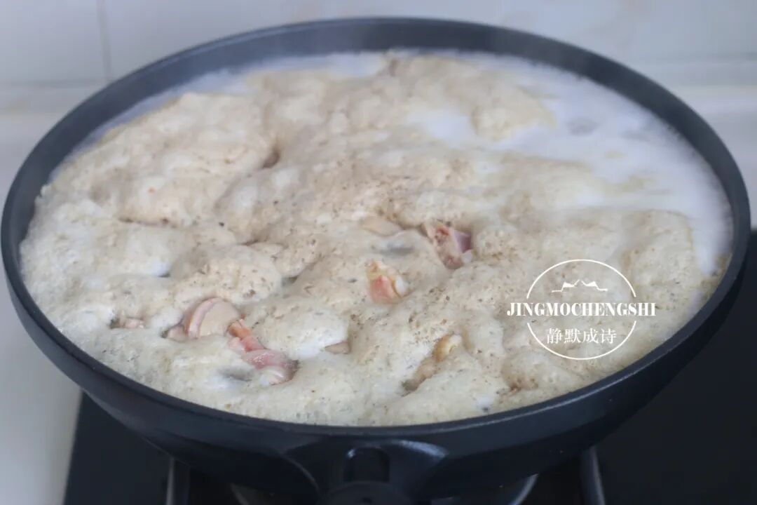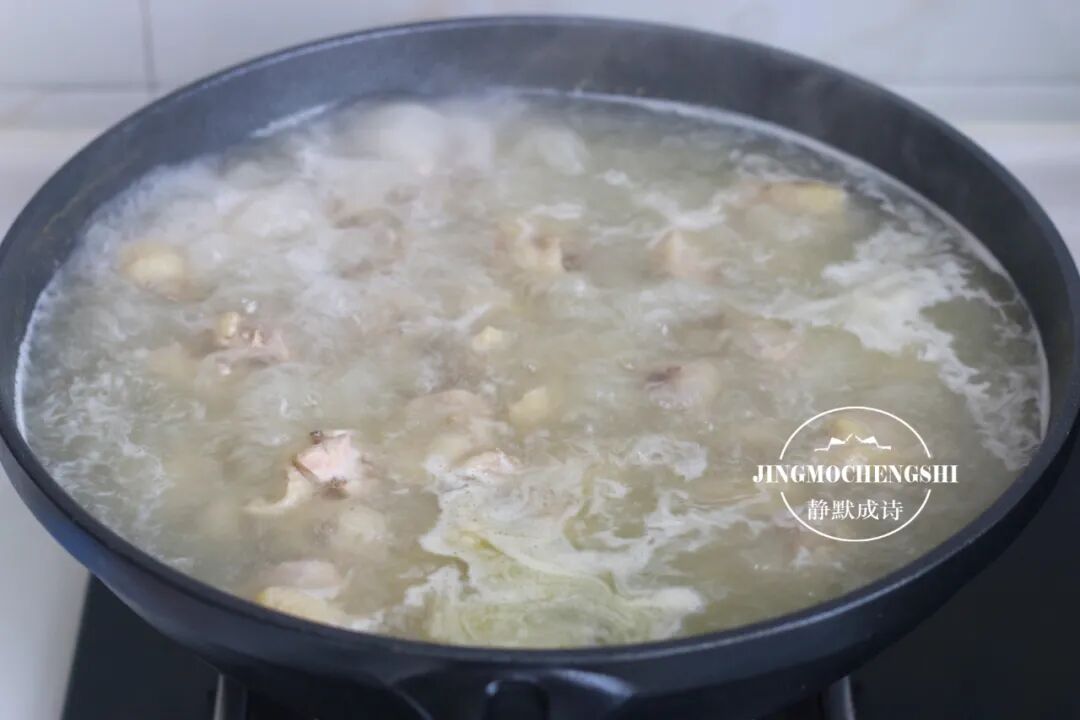2、随着水温的升高,鸡肉中的血沫会形成浮沫,要及时把它撇掉,不然会粘到鸡肉上,而且会粘得相当牢固,即使后面清洗,也不容易洗干净。