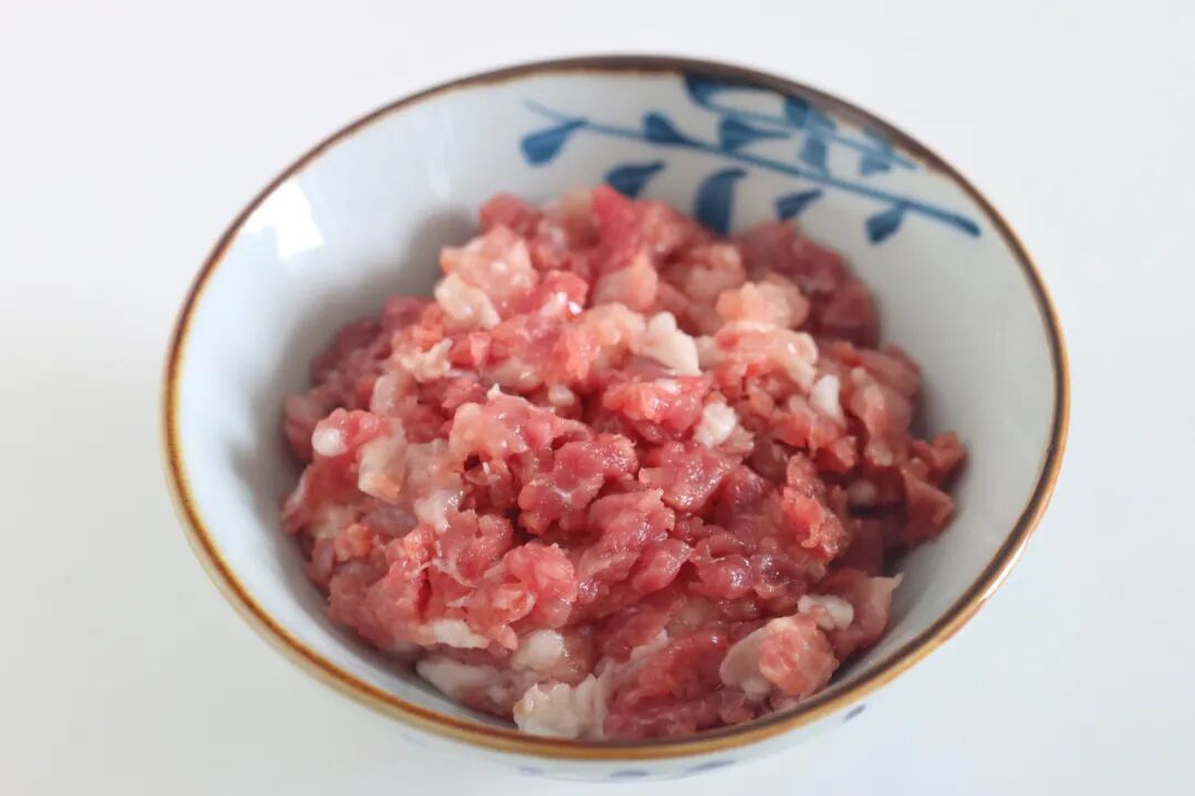 3、猪肉末选择纯瘦或一肥九瘦的,洗净后剁成小肉粒待用。