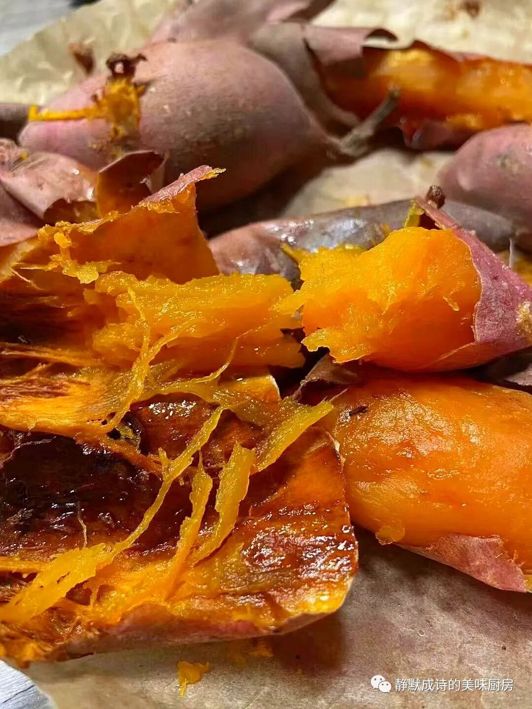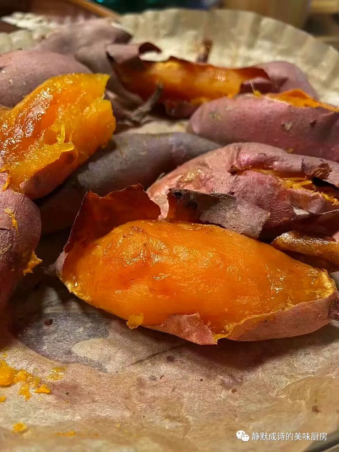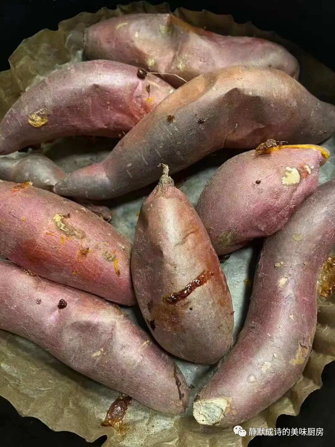 我再重重讲一下,免得有些新朋友不知道:烟薯收到之后,放阴凉干燥处,让它的淀粉糖化一下再吃会更甜,吃板栗也是一样的道理。小薯的话,烤箱200度,1个小时;空气炸锅200度,30分钟(最后10分钟需要翻面)。