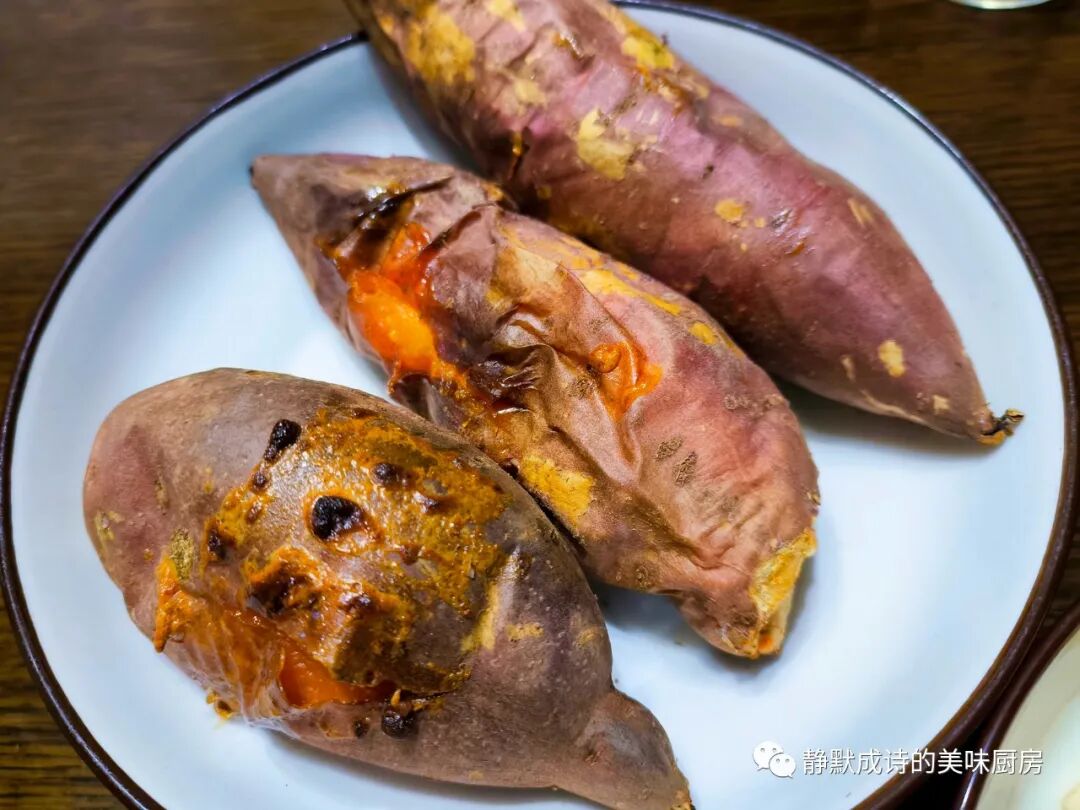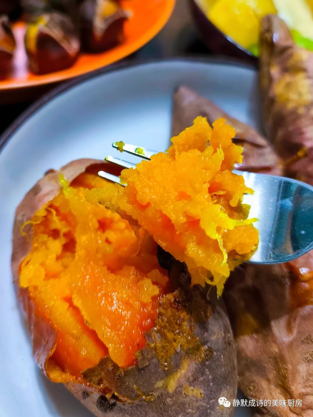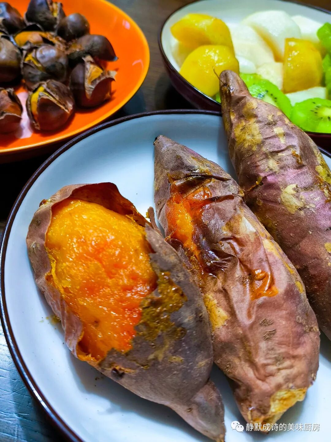 我再重重讲一下,免得有些新朋友不知道:烟薯收到之后,放阴凉干燥处,让它的淀粉糖化一下再吃会更甜,吃板栗也是一样的道理。小薯的话,烤箱200度,1个小时;空气炸锅200度,30分钟(最后10分钟需要翻面)。
