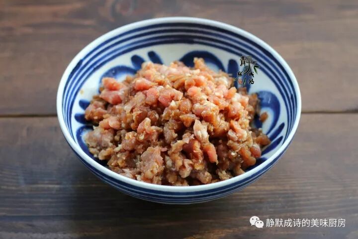 2、把猪肉末用盐、酱油、淀粉和少许油用手抓匀,腌制一会儿再用。
