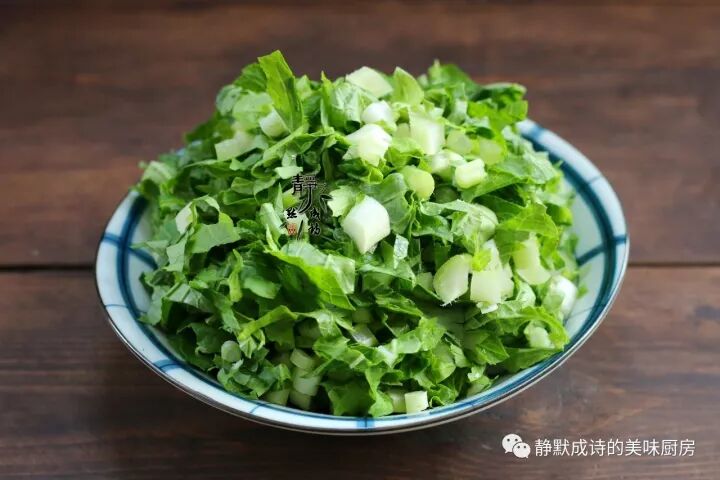 3、萝卜缨切碎再炒,这样切断了粗纤维,口感更脆嫩。