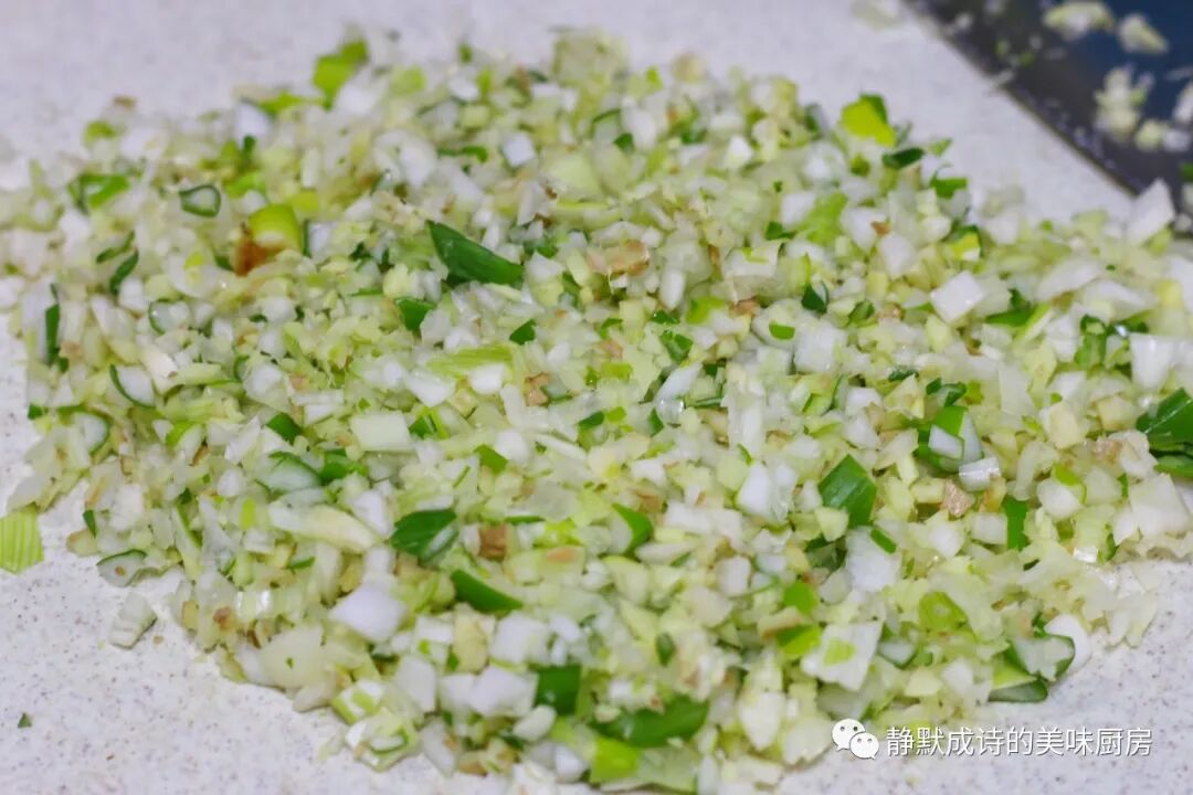 3、大葱切成细小的葱花待用。