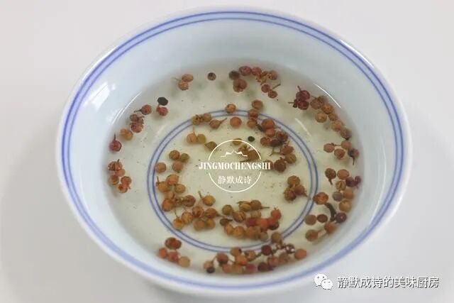 1、先把饺子面团和好,这个面团要软硬适中,过软和过硬都不好吃。然后抓一小撮花椒放进大碗,冲入热水,静置十几分钟,花椒的味道会溶入水中,我们一会儿取花椒水用。