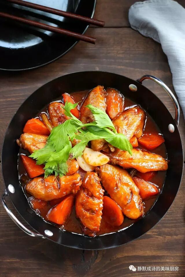 鸡翅,大人孩子都喜欢。平时做习惯了红烧鸡翅,今天我来分享给大家另外一种家常做法,不放一滴水,更不放啤酒,加上胡萝卜、土豆、莴笋、芹菜之类的蔬菜一起来焖,再调个特别的酱汁儿,肉菜一锅出,极为下饭,别样的美味。