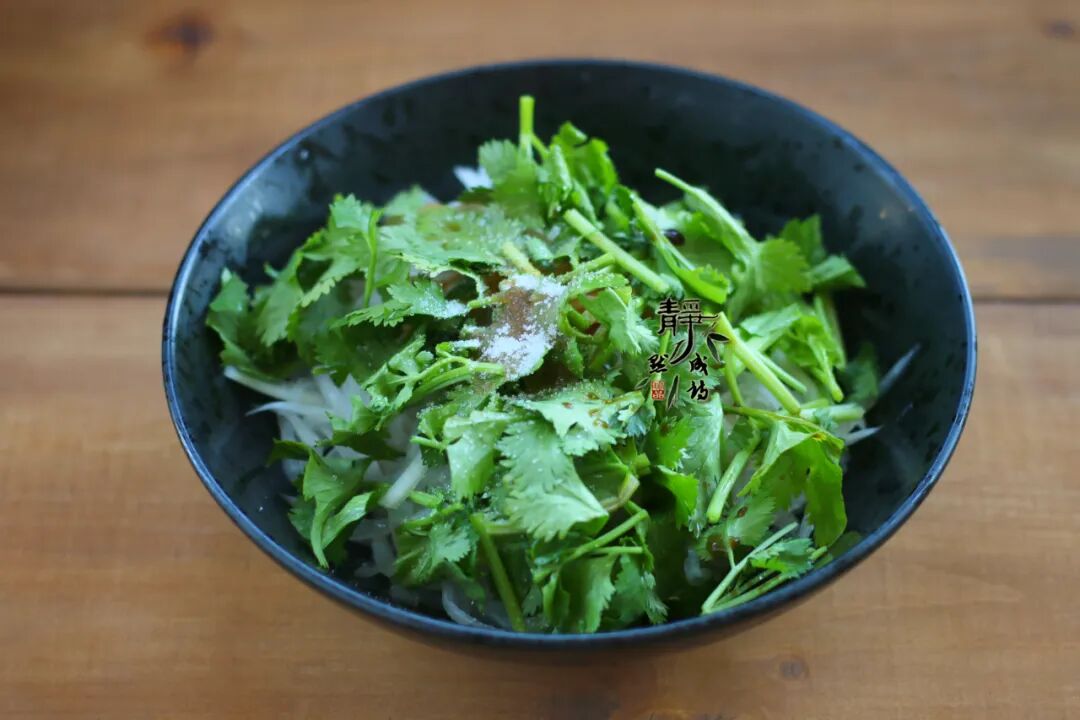 【食材】:白萝卜半根、香菜两棵、生抽两汤匙、陈醋两汤匙、白糖半汤匙、盐适量、香油少许。