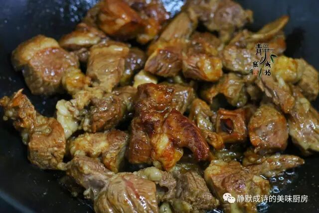 3、牛肉经过炒制添加清水时,要加凉水,而且要一次性加足,若途中加水请加开水;