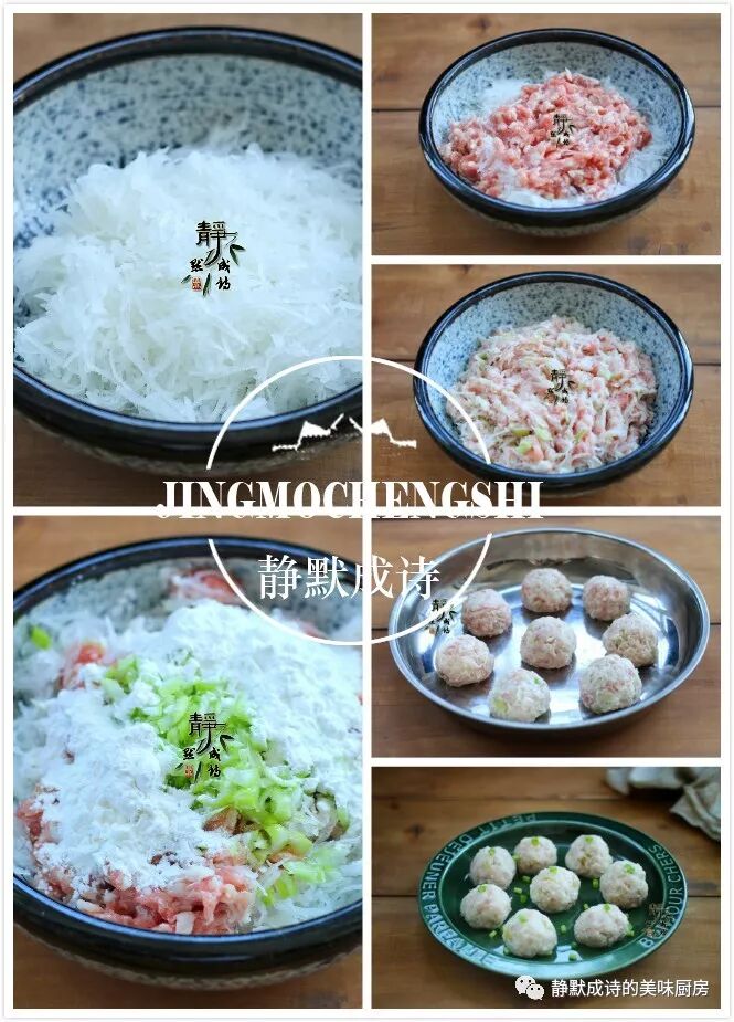 【食材】:猪后腿肉半斤、生姜1小块儿、白萝卜半根、蛋清1个、白胡椒粉少许、盐适量、香油几滴、香葱或香菜少许。