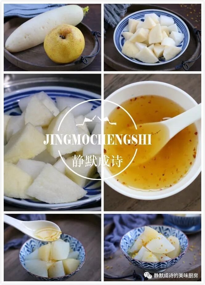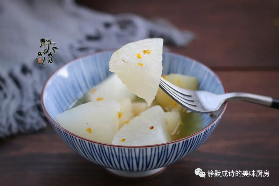 第四道菜谱:桂花蜂蜜萝卜蒸梨(秋冬润肺食谱)