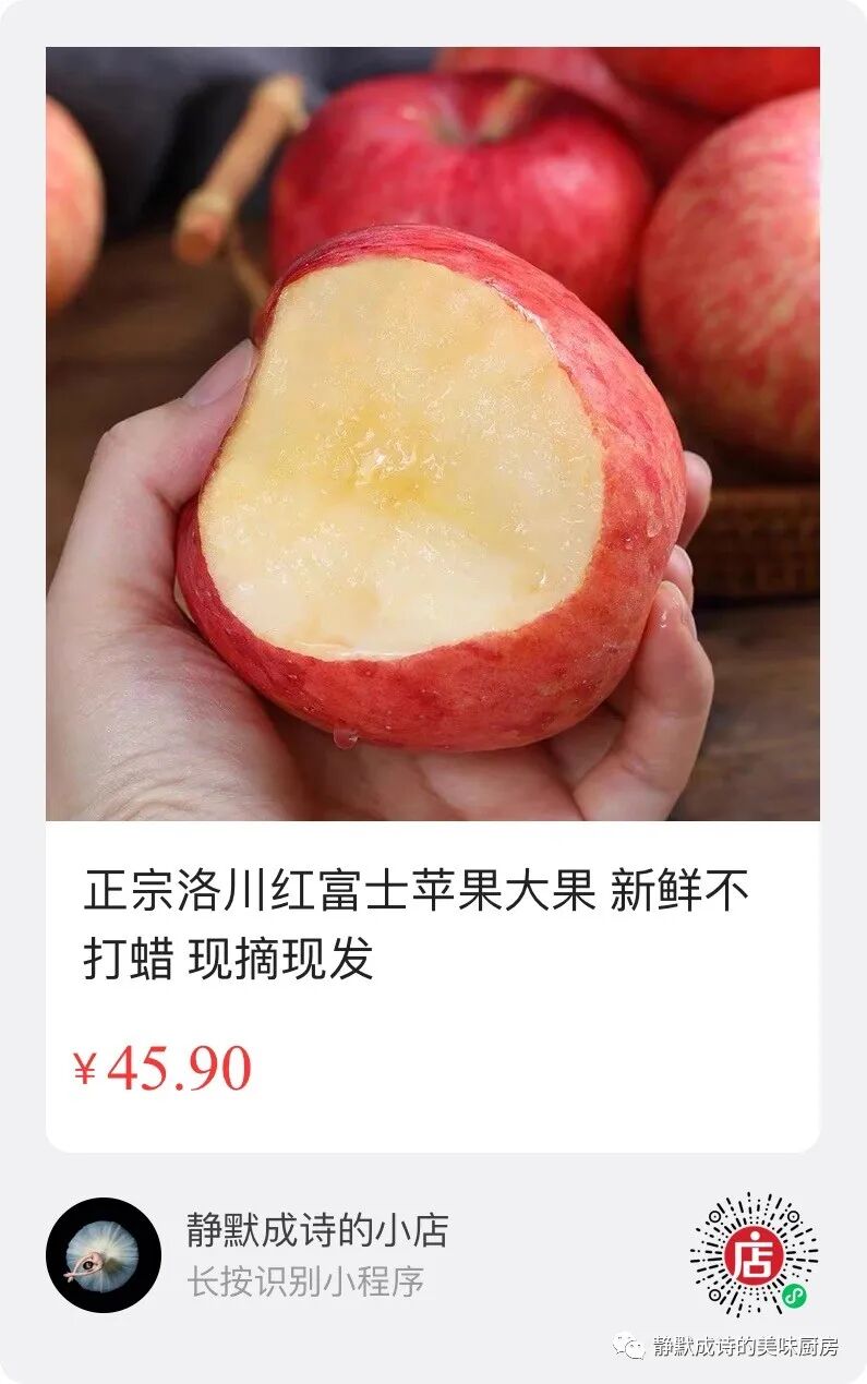 “每天一个苹果,医生远离我”。苹果是温性水果,虽然很甜,但它热量并不高。而洛川红富士苹果,因当地昼夜温差大,苹果质地脆又甜,风味儿也足,它是我最喜欢的苹果,没有之一,也是我这几年来一直给大家推荐的苹果。