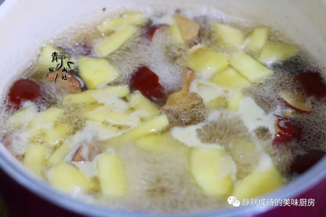 4、开火,煮上约小二十分钟,苹果发软时即可离火享用了。