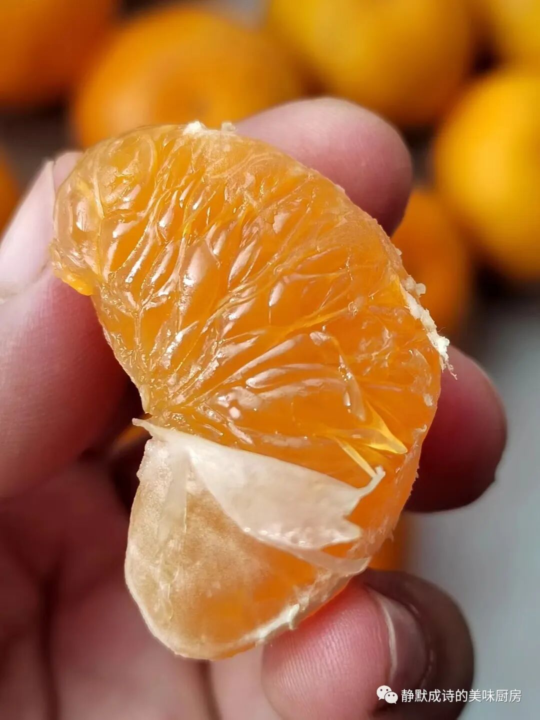 涌泉蜜桔最大的特点是无核无籽也无渣,入口即化,嫩如豆花。吃进嘴里,无需过多咀嚼,就连果肉外面的薄膜,都会化渣,嘴巴里只有满嘴爆汁的满足感,仿佛在喝果汁一样。